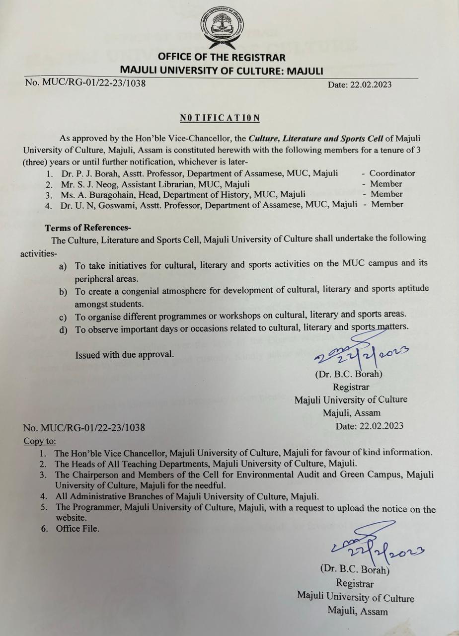 Culture, Literature and Sports Cell constitution